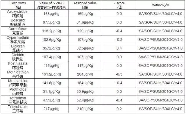 此次能力验证,采用|Z|值评价实验室检测结果是否满意:∣Z∣≤2为满意结果(|Z|值越接近0.0,表明测值越接近赋值,结果越准确);2.0<∣Z∣<3.0为有问题结果;∣Z∣≥3.0为不满意结果。而诺安实力可在此次测定的12个农残项目中,有4项结果|Z|值为0,即测值与赋值无偏差;剩余项目的|Z|值均<1,都在满意结果范围内。
