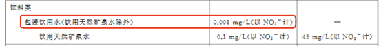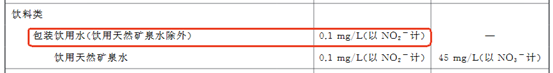 3、包装饮用水(饮用天然矿泉水除外)亚硝酸盐限量要求修改