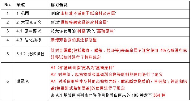 - 适用范围更广,纳入了纸涂料涂层和间接接触食品涂层